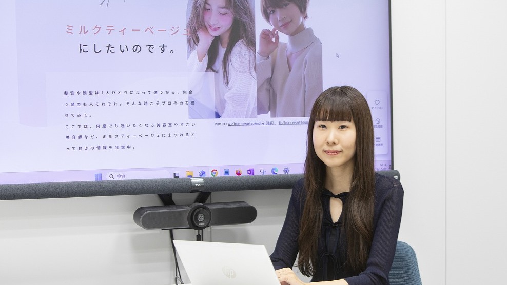 2021年入社。文系出身、サークルでは地域活性イベントの企画や協賛金営業を担当。最初の配属はOZmallのヘアサロン営業で、2022年に異動、ビューティ領域のWebディレクターとしてUIUXの改善を担当。